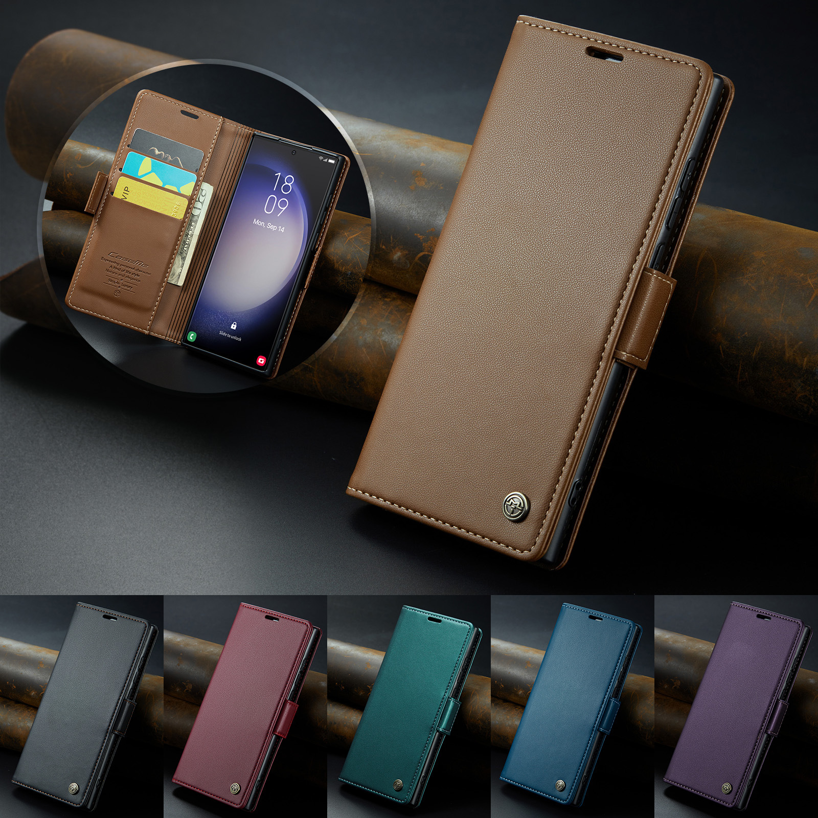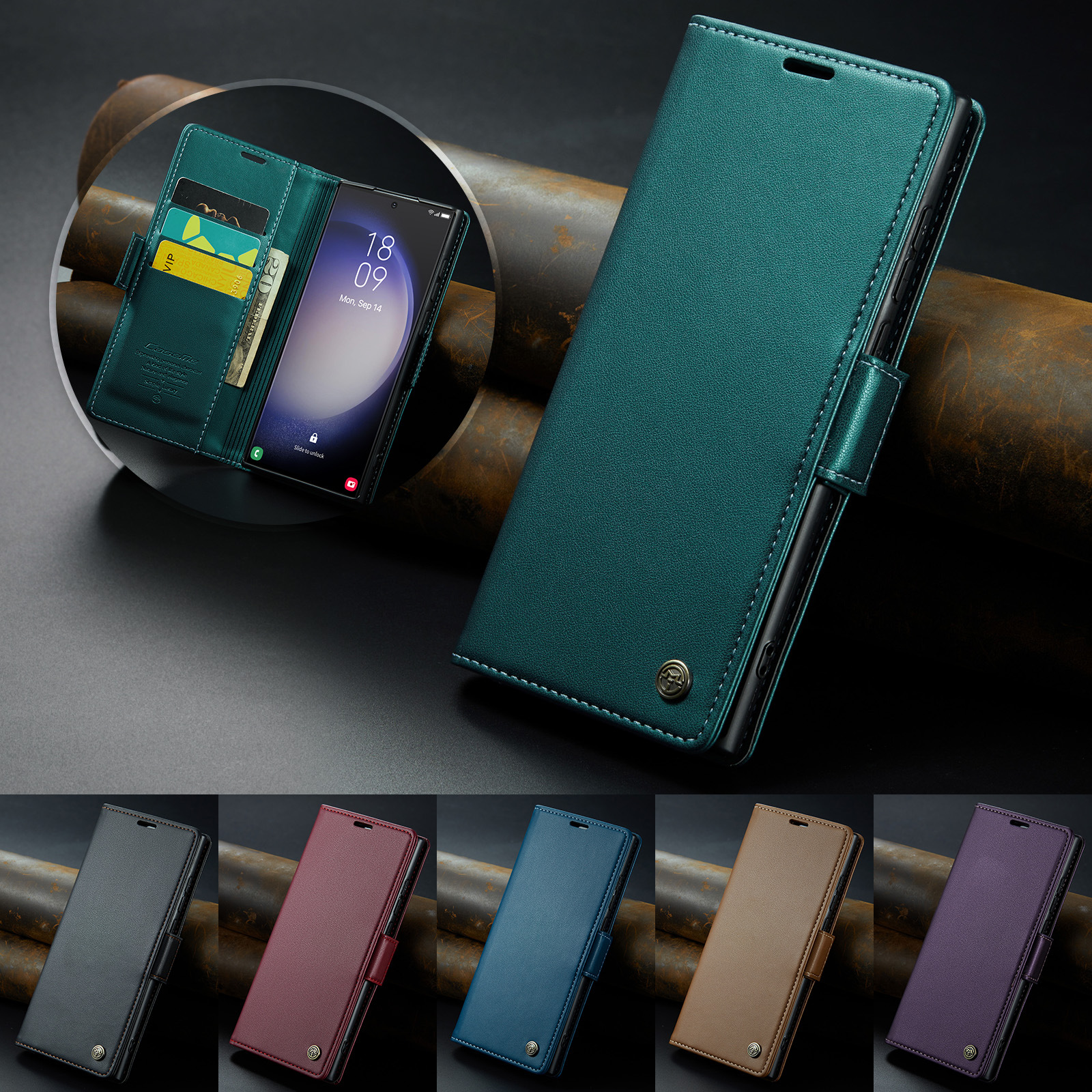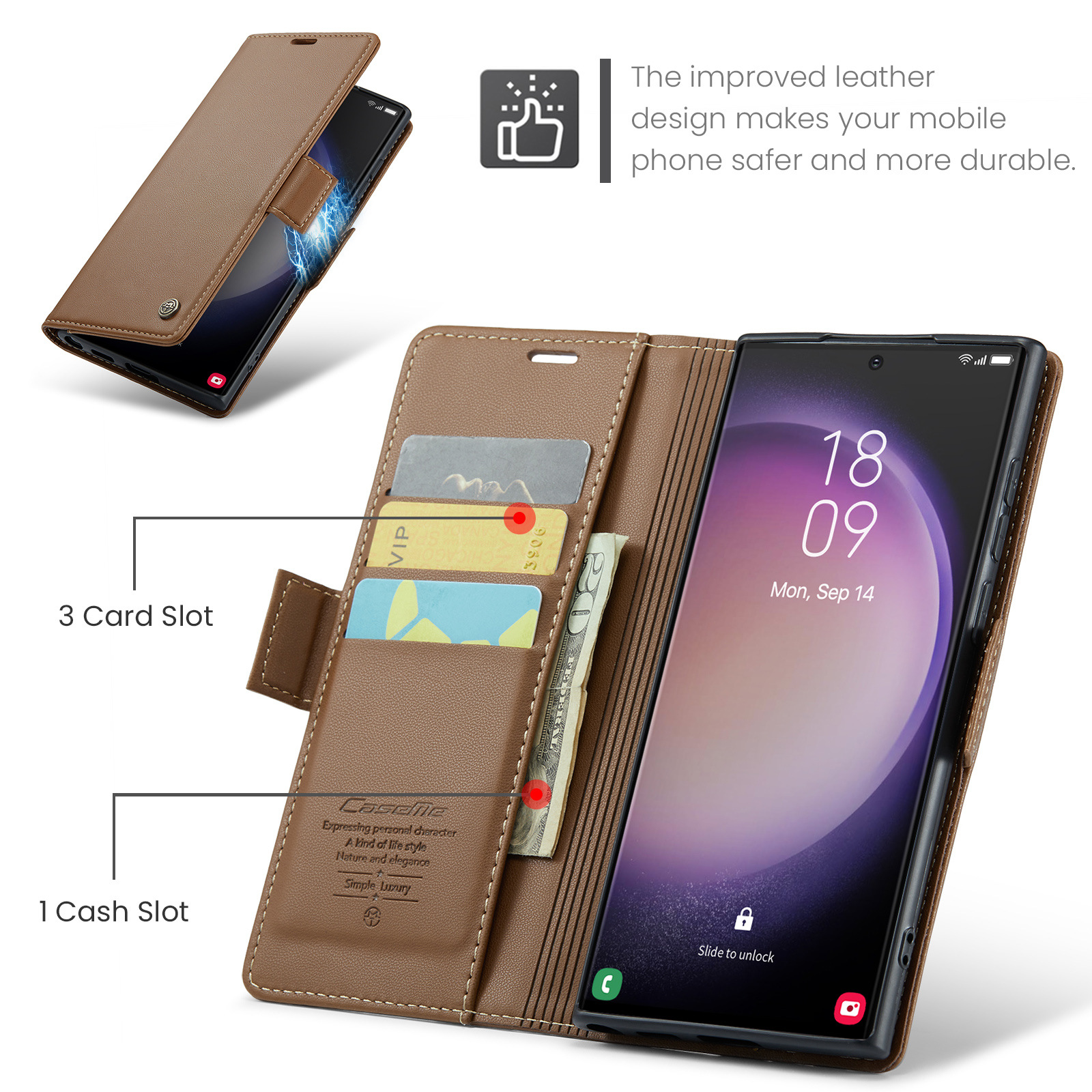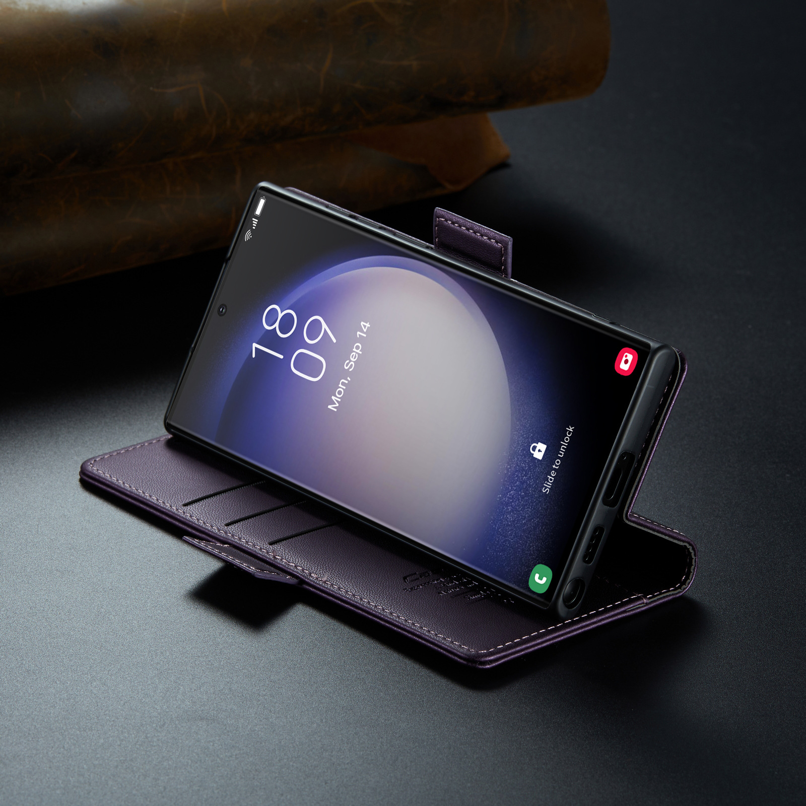 New RFID Blocking Magnetic Closure Wireless Charging Leather Phone Case for Samsung Galaxy S24 Ultra