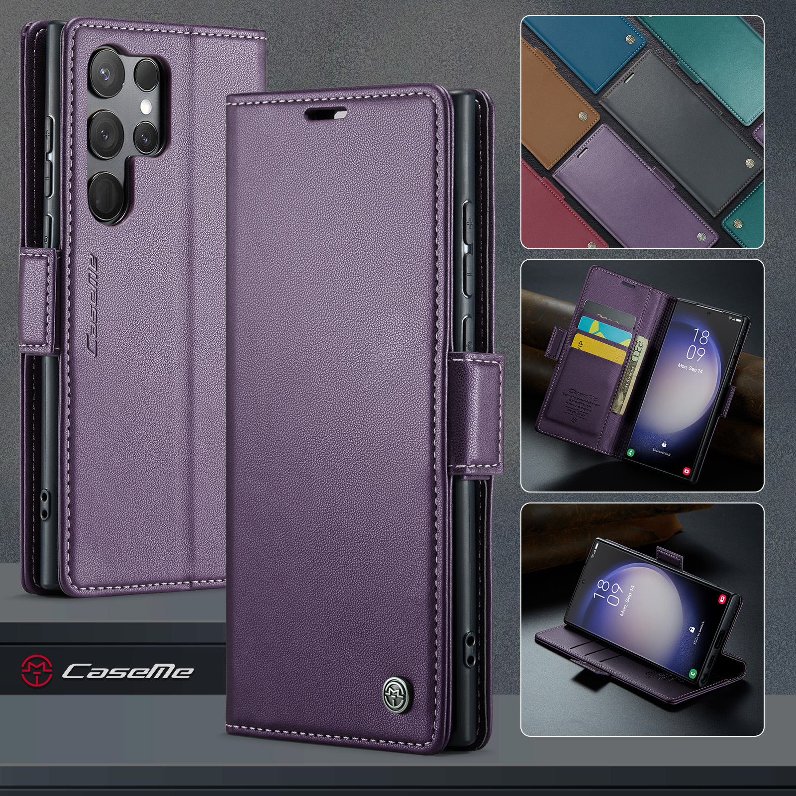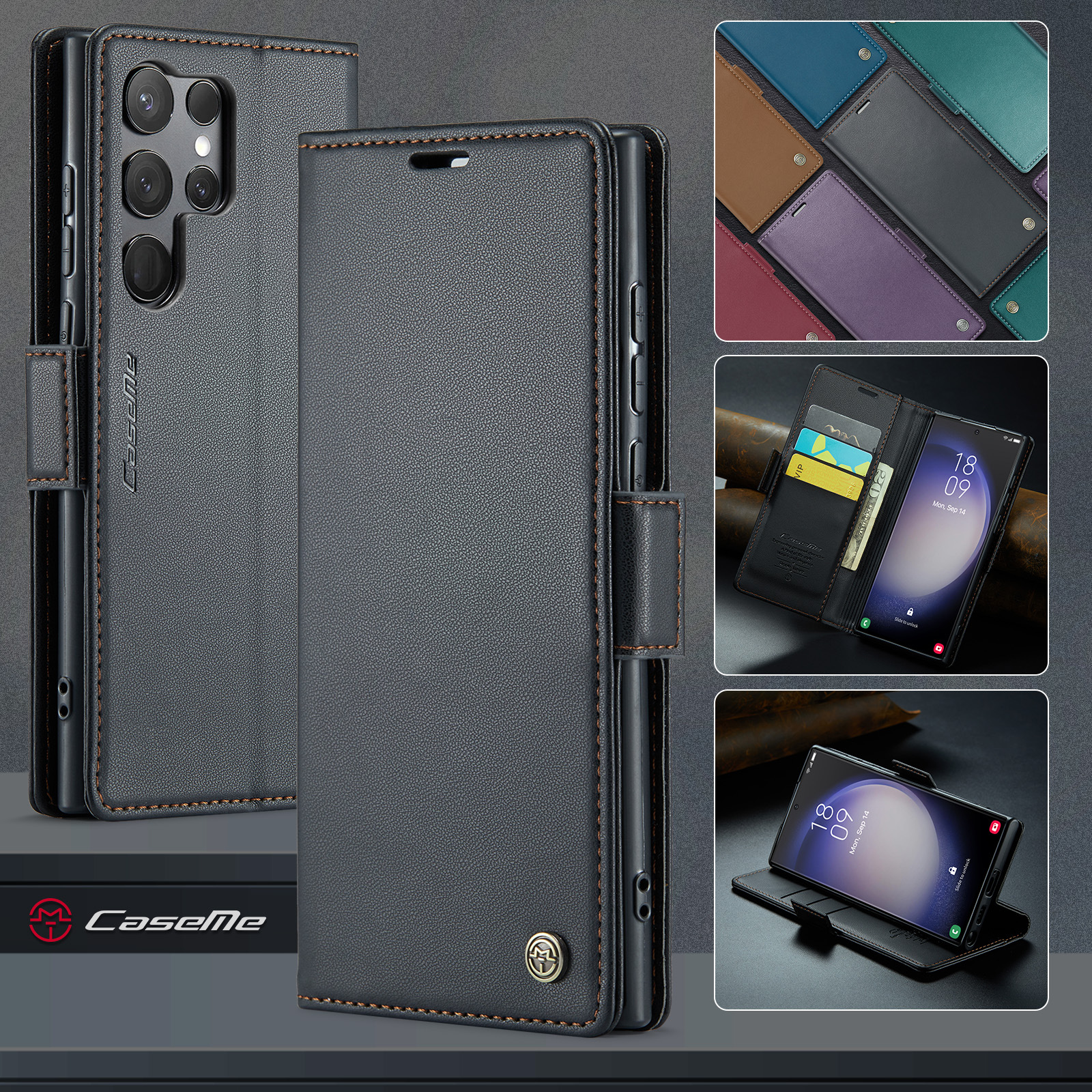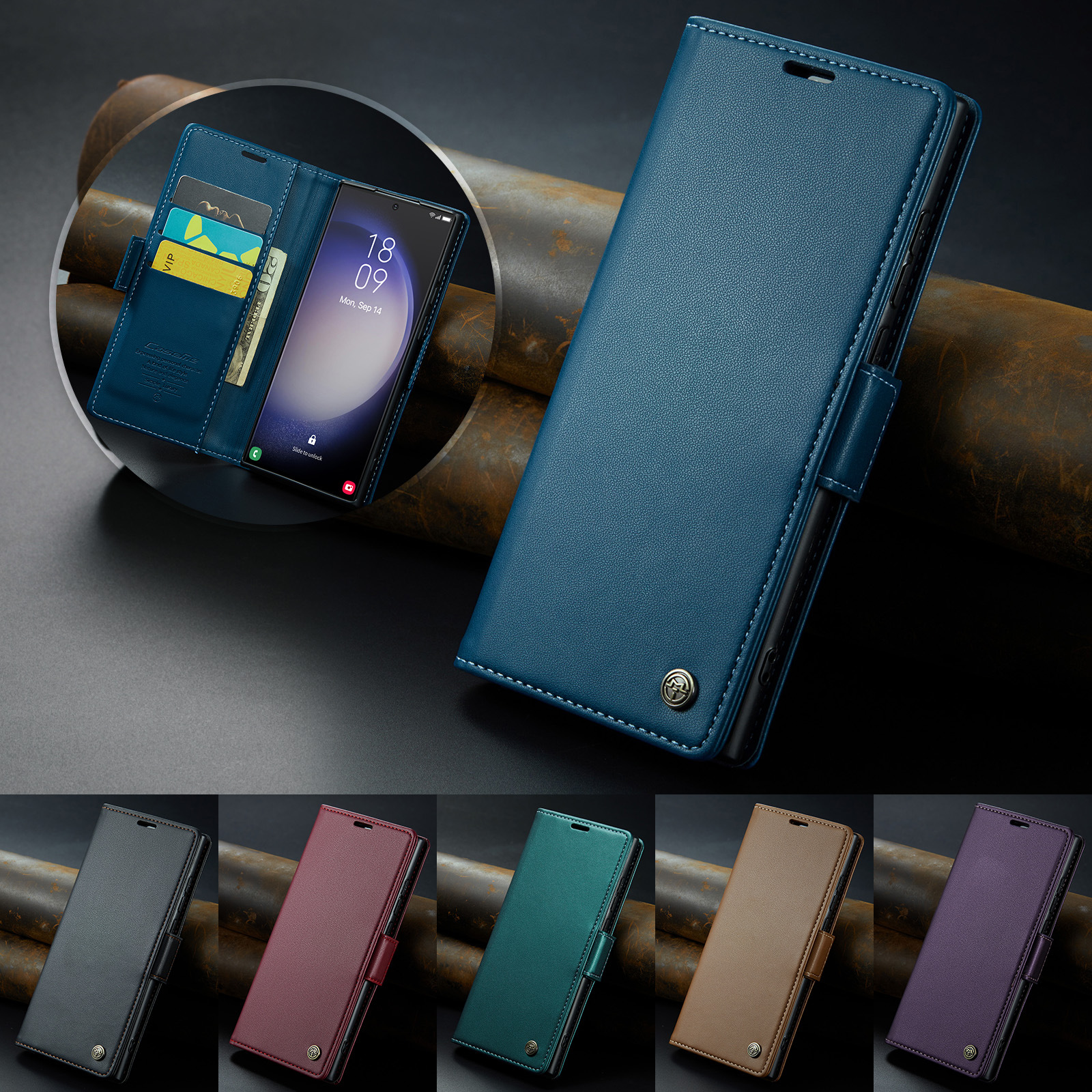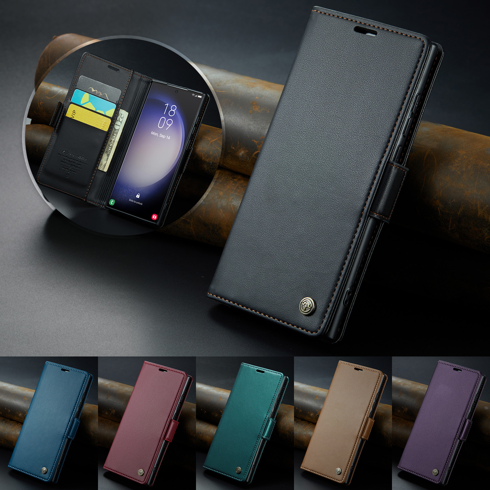 New RFID Blocking Magnetic Closure Wireless Charging Leather Phone Case for Samsung Galaxy S24 Ultra