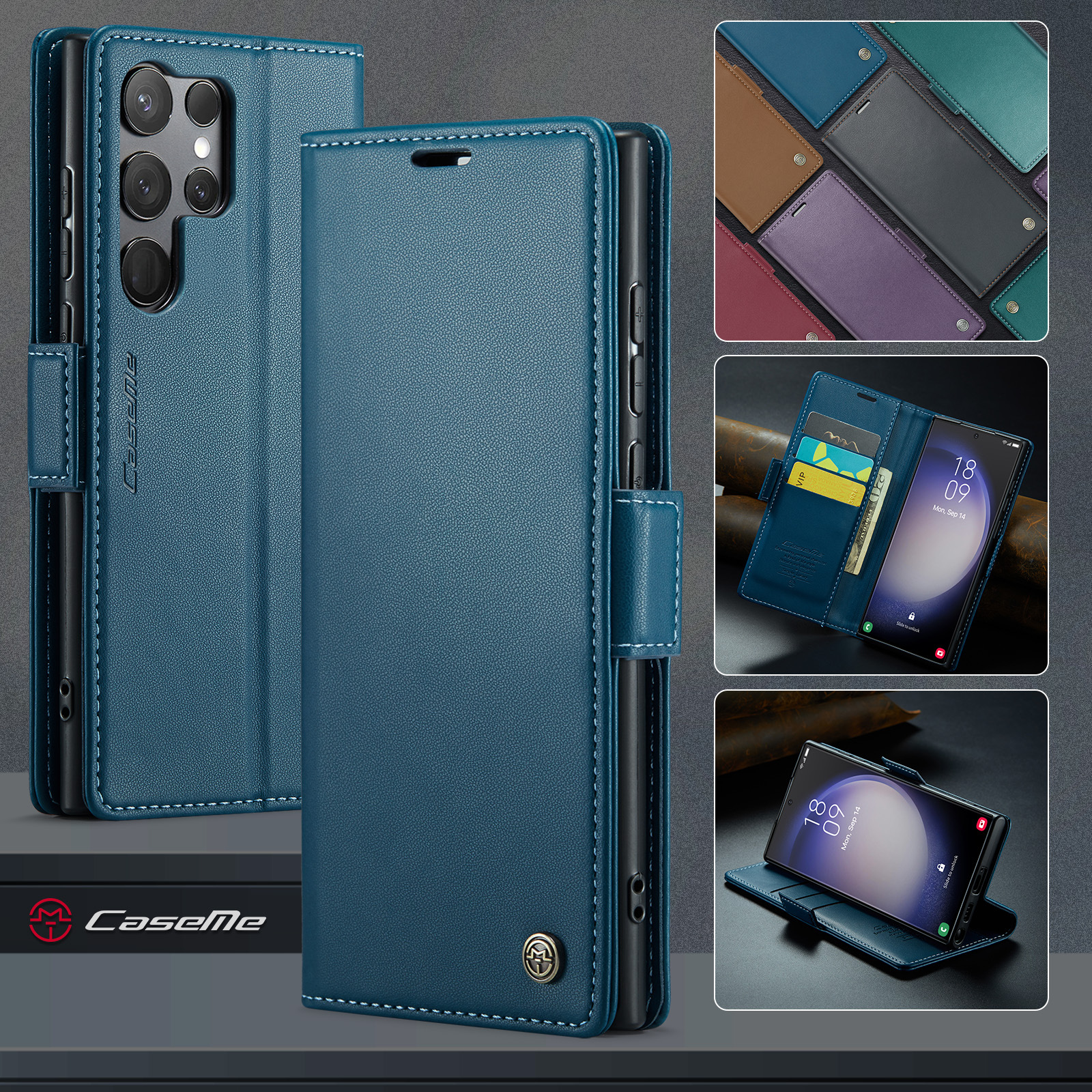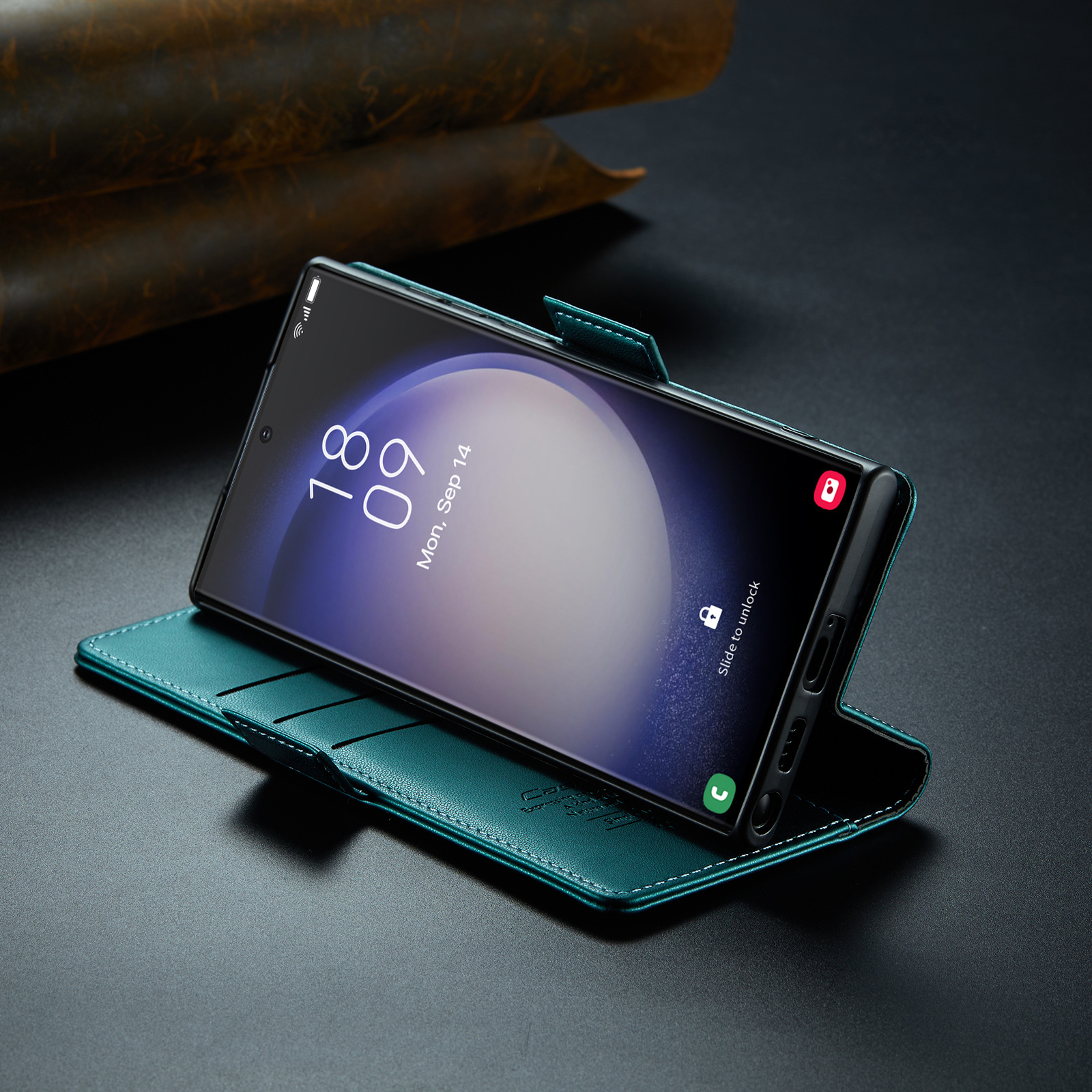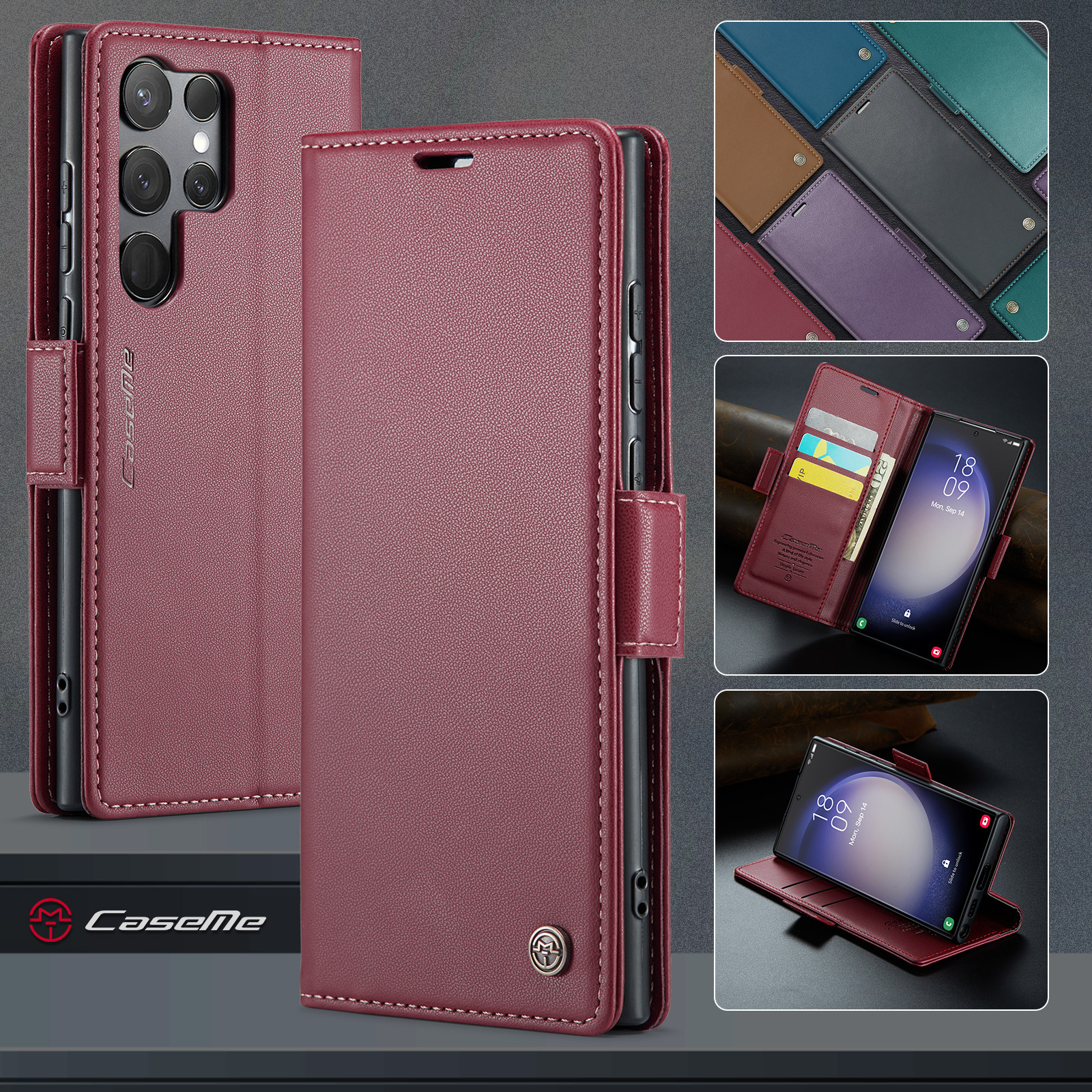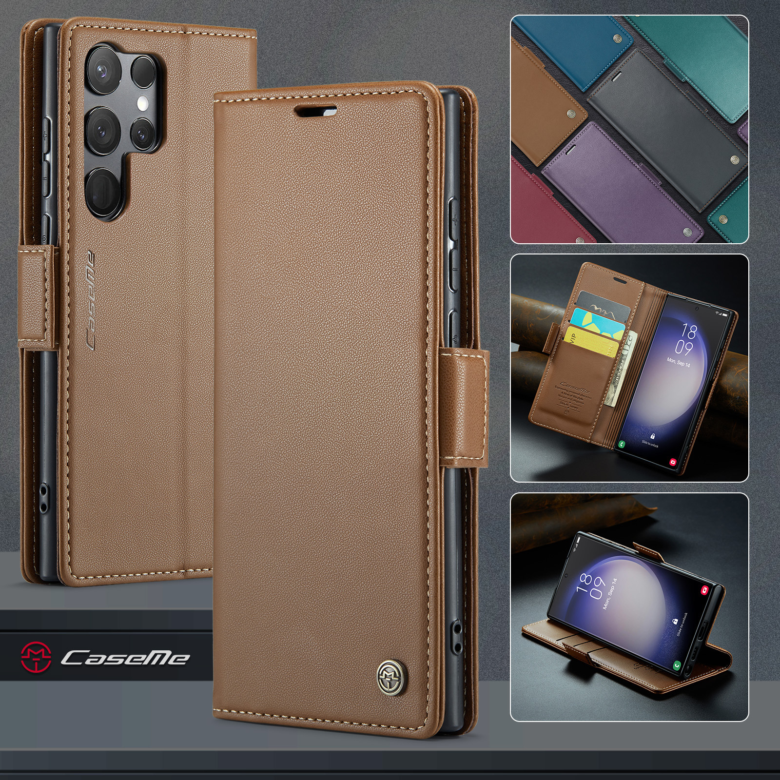 New RFID Blocking Magnetic Closure Wireless Charging Leather Phone Case for Samsung Galaxy S24 Ultra