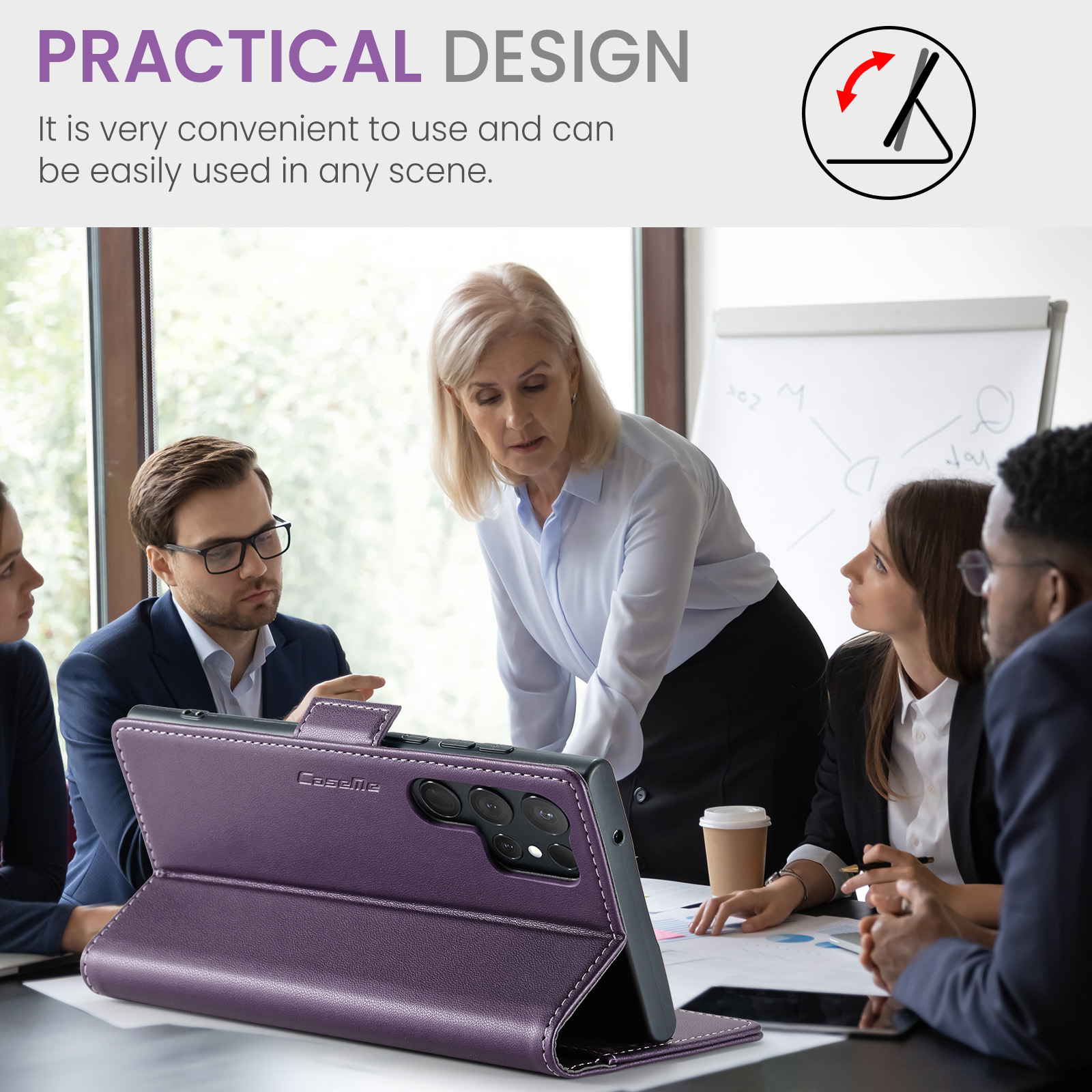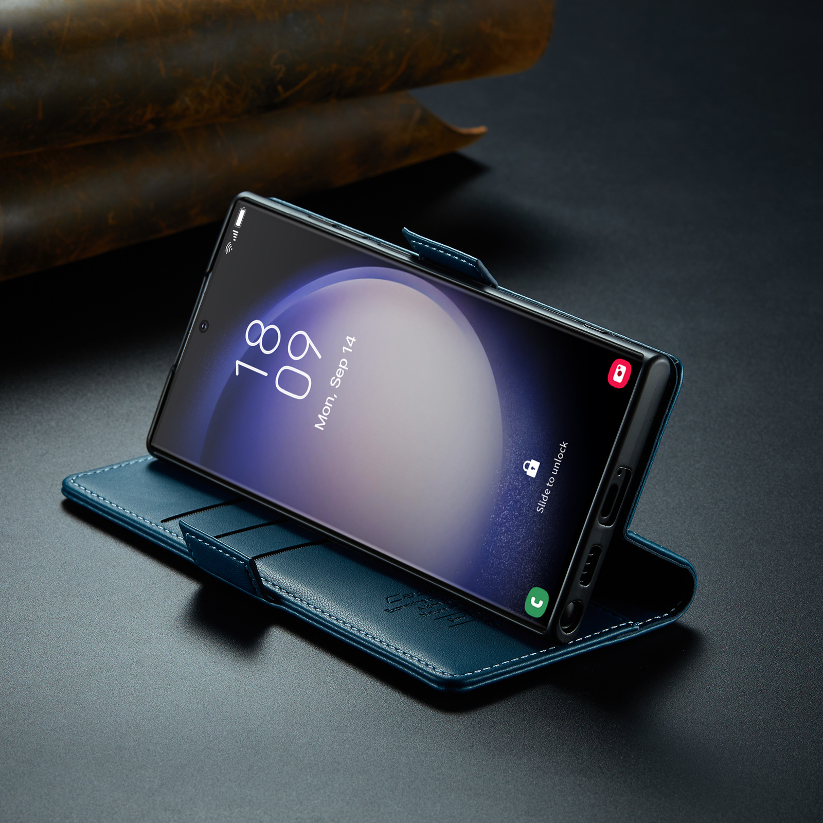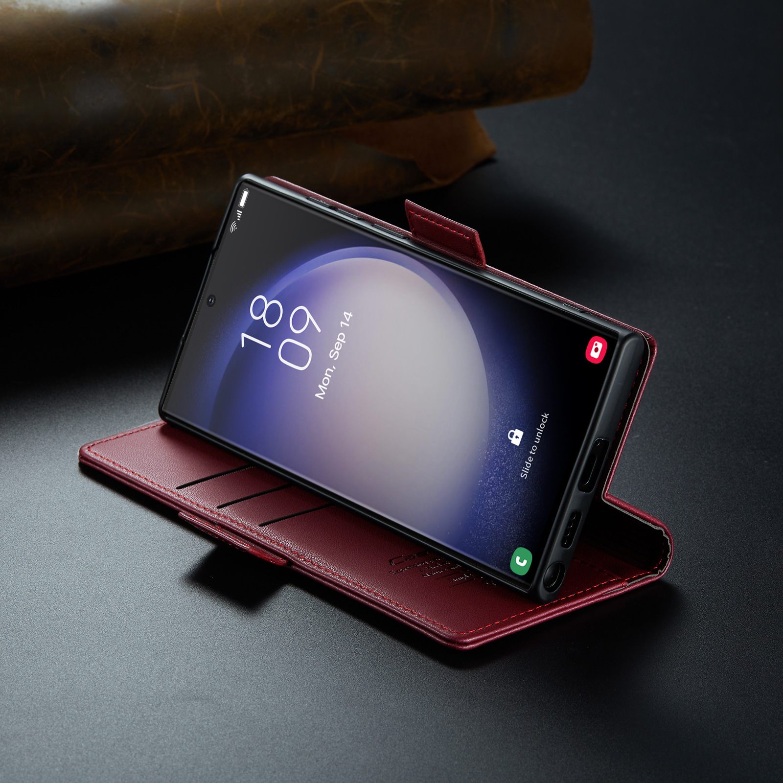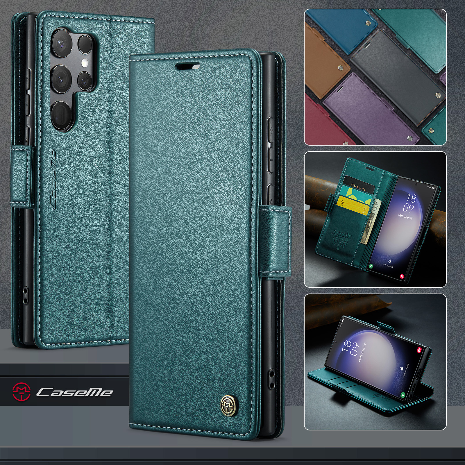 New RFID Blocking Magnetic Closure Wireless Charging Leather Phone Case for Samsung Galaxy S24 Ultra