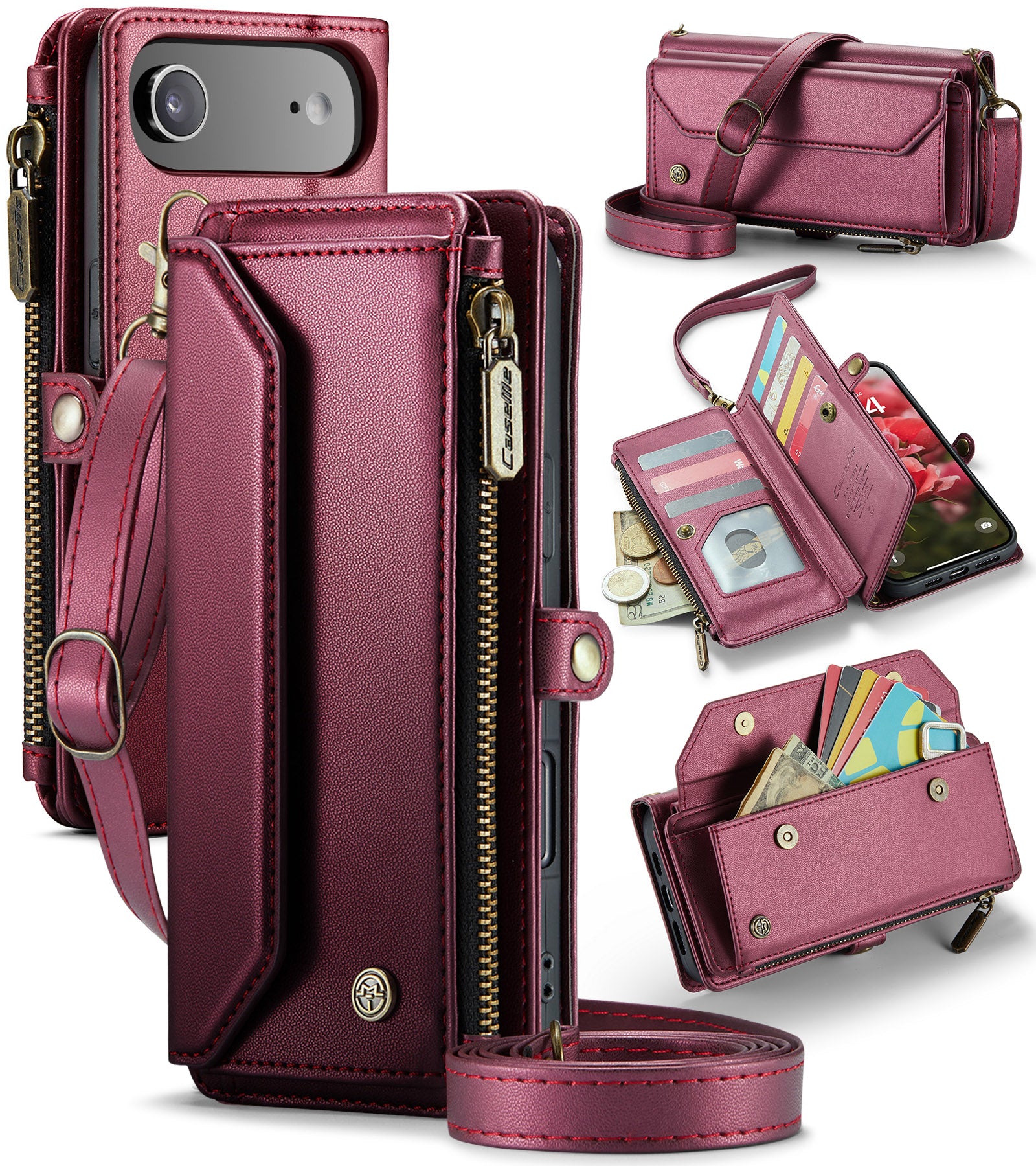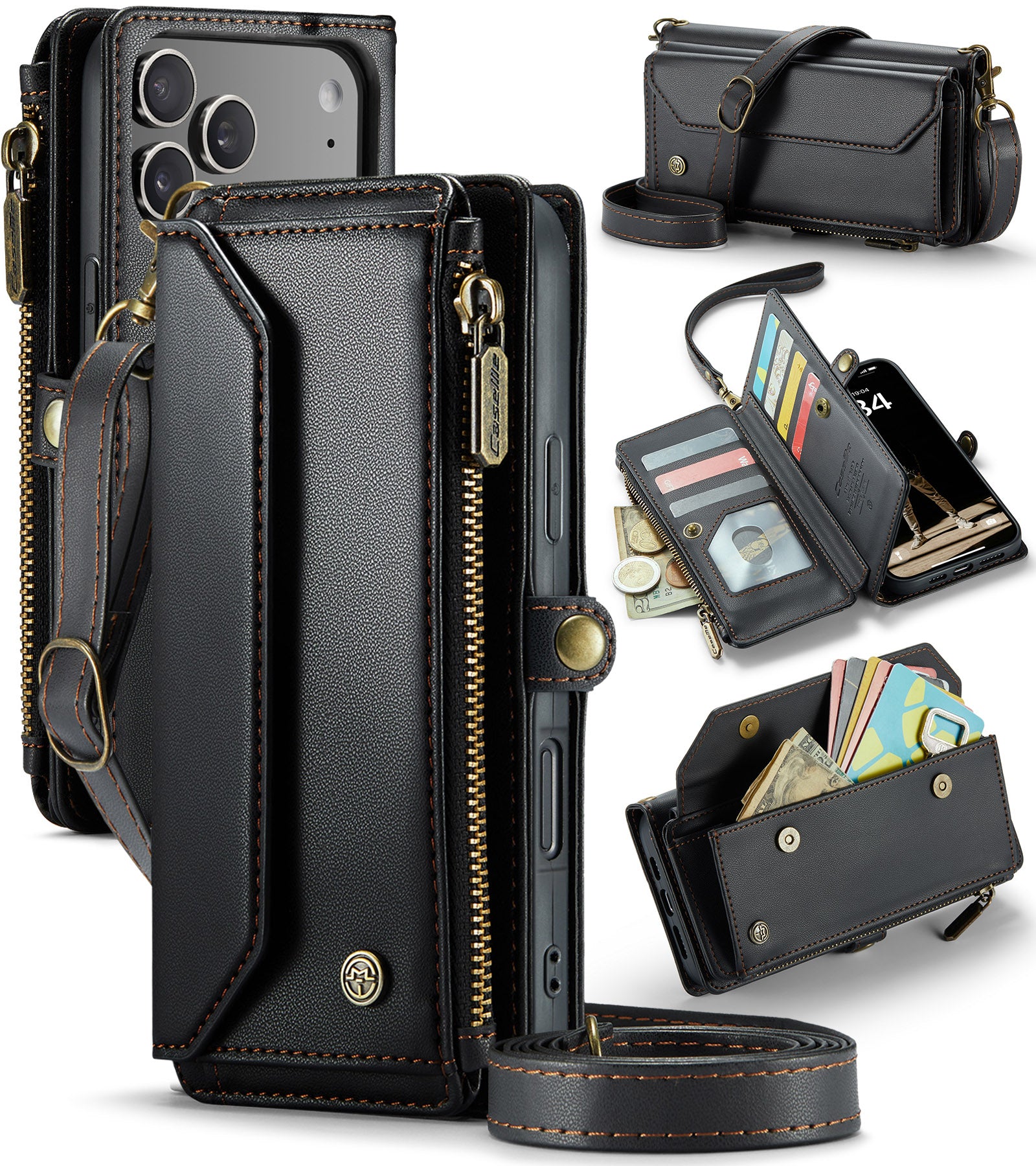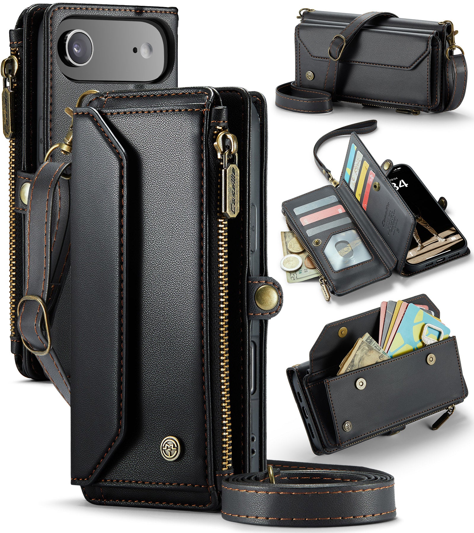 New RFID Blocking Zipper Wallet Supports Wireless Charging with Long and Short Lanyard Leather Phone Case for iPhone Air/17/17 Pro/17 Pro Max